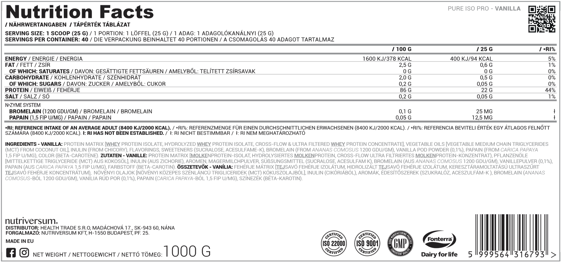 The ISOPRO is a premium protein Fonterra default, all supplemented with digestive enzymes (bromelain, papain) for even easier digestibility.
